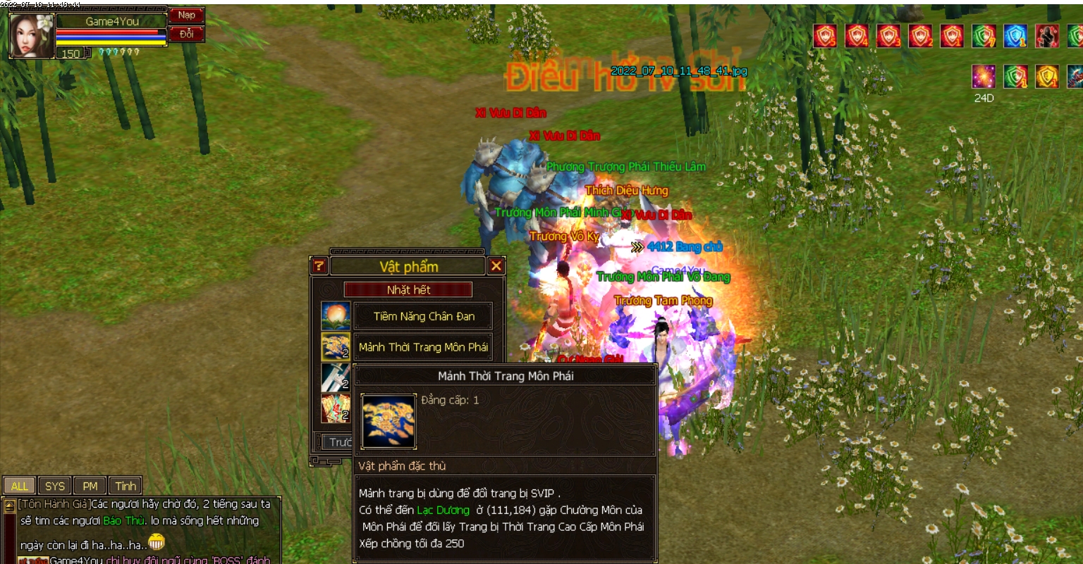 🚩Đội 2 gồm : Chưởng Môn phái Minh Giáo , Chưởng Môn Phái Võ Đang, Chưởng Môn Phái Thiếu Lâm tiến đến Vong Xuyên Hoa Hải tiêu diệt Ma Thú Vong Xuyên Thủ Quân