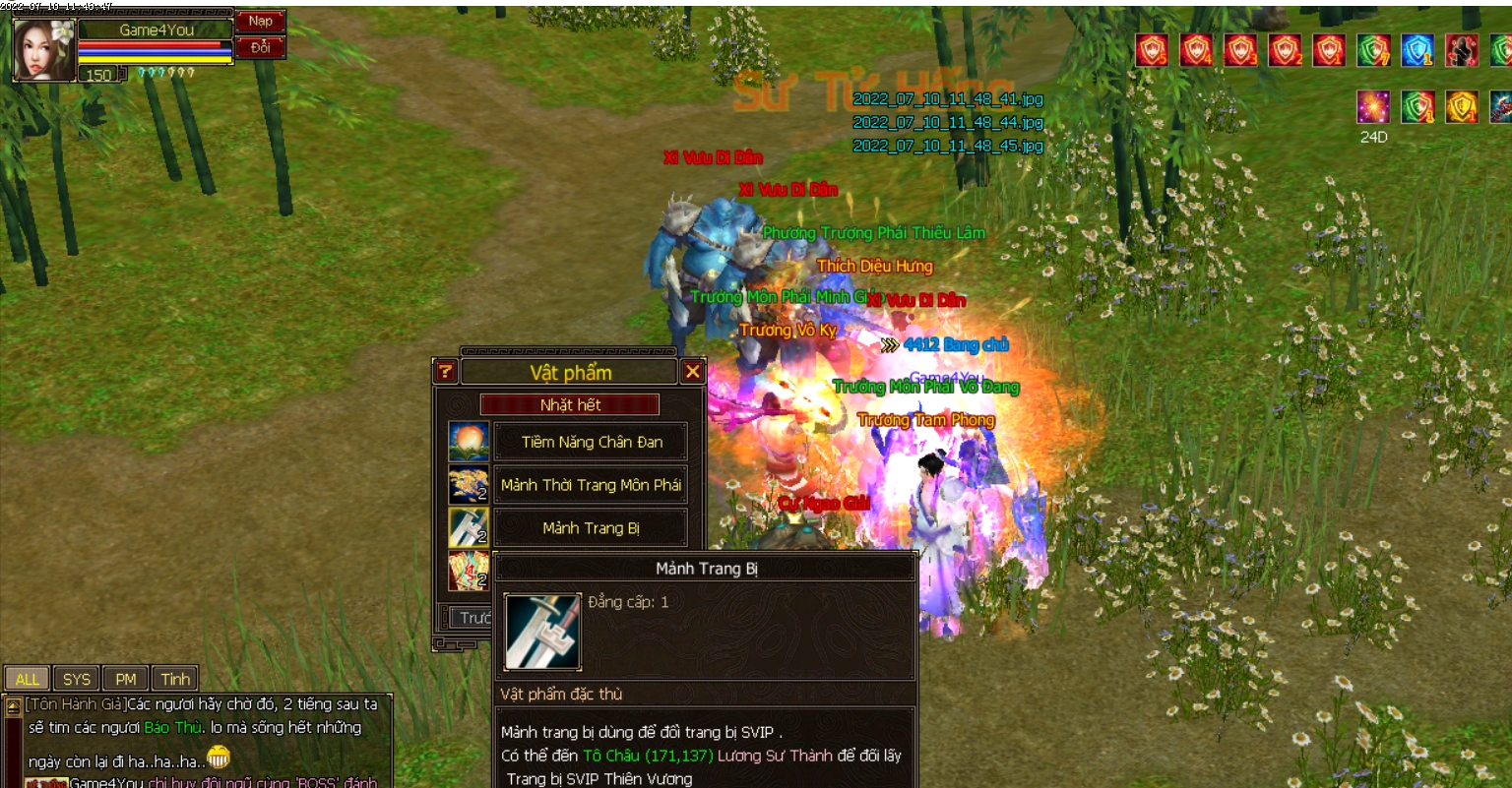 🚩Đội 1 gồm : Chưởng Môn phái Cái Bang , Chưởng Môn Phái Thiên Long, Chưởng Môn Phái Tiêu Dao tiến đến Mạc Nam Thanh Nguyên tiêu diệt Ma Thú Thanh Nguyên Thủ Quân