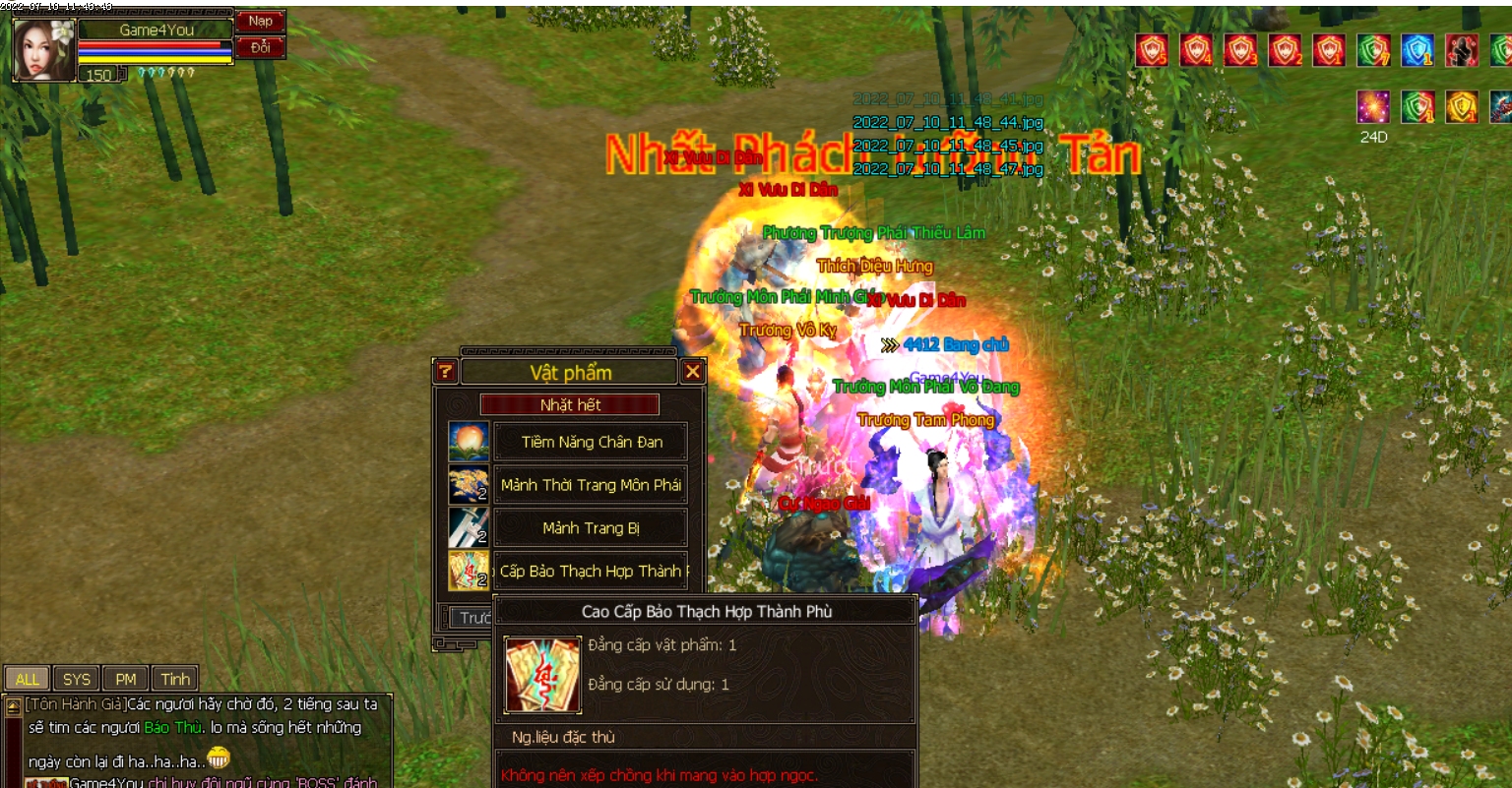 - Phần khác, nhân sĩ giang hồ cùng Cửu Đại Môn Phái theo thiệp mời của Võ Lâm Minh Chủ Long Ca đến Tụ Hiền Trang Game4You dự Đại Hội Võ Lâm.